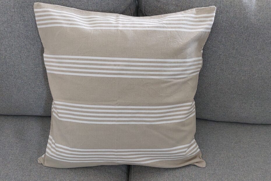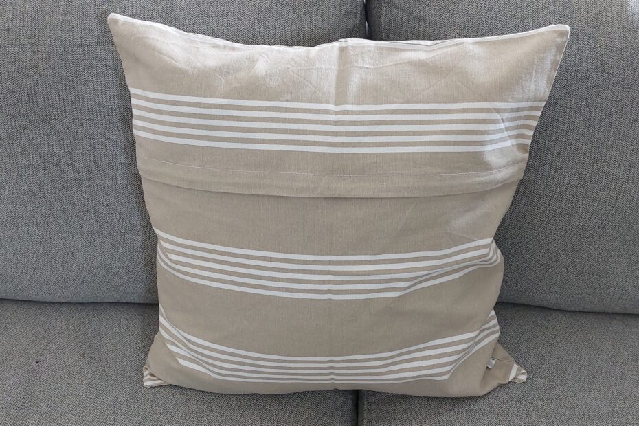 Housse de coussin beige ligné blanc- verso
